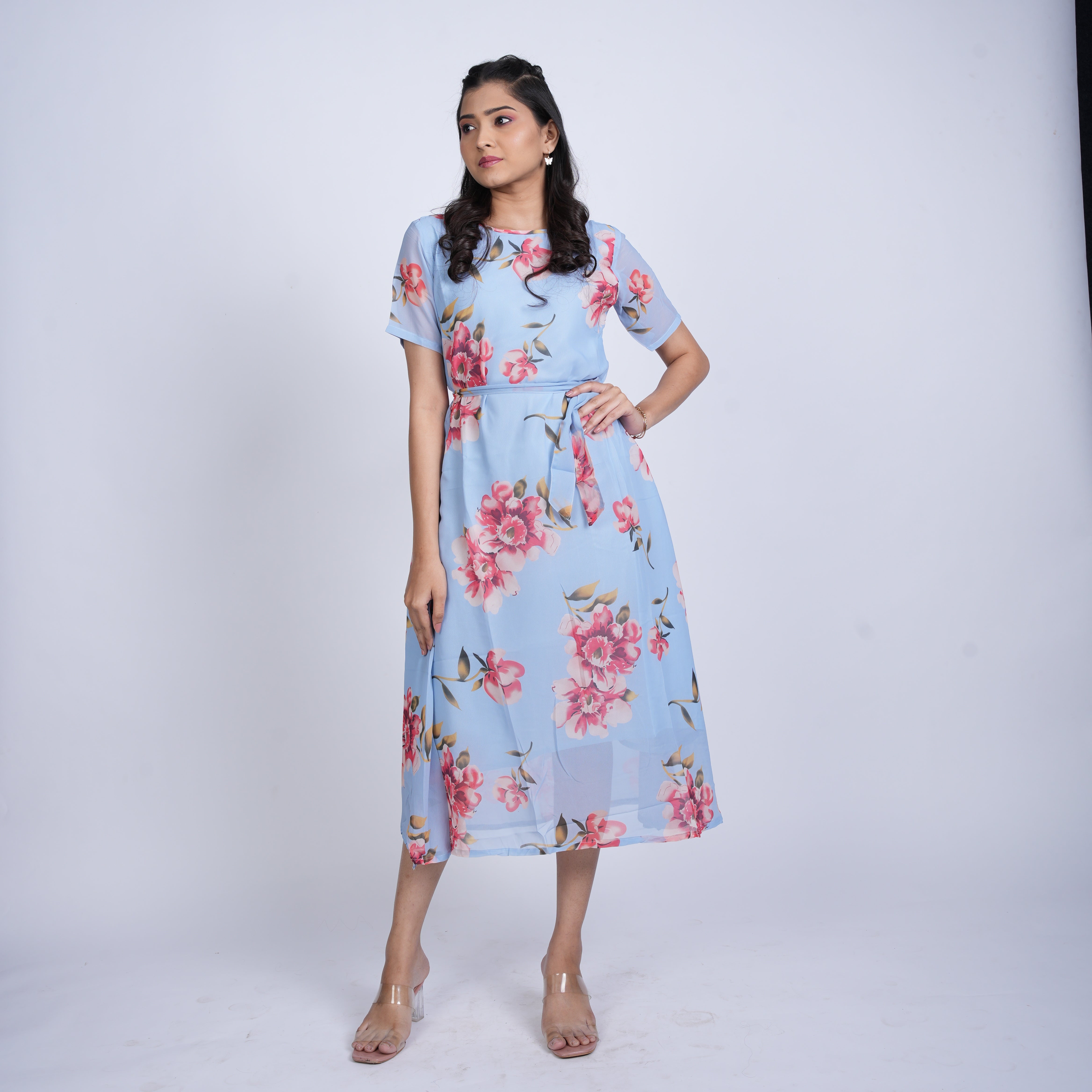 Pair this floral beauty with nude block heels or strappy sandals for a chic daytime look. Add delicate hoop earrings and a pastel sling bag...